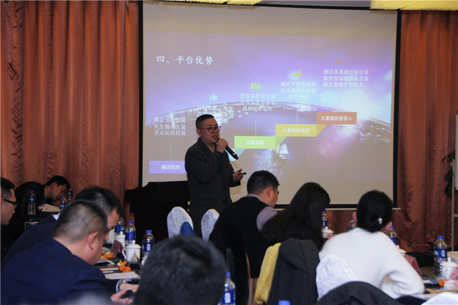 袍商实业总经理金克森向与会嘉宾做袍商近期工作总结与汇报