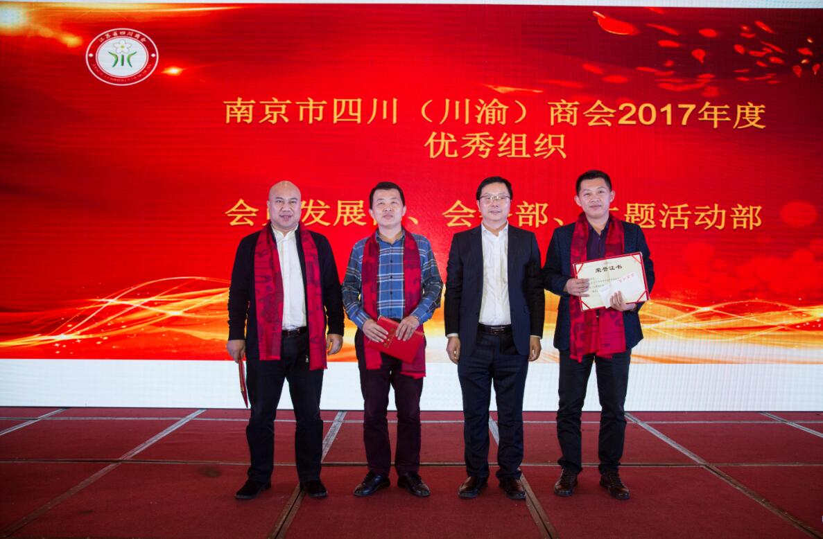 在2018年元旦到来之际,江苏省四川商会第二届第三次理事会暨2018迎新晚会于12月30日在南京国际博览会议中心顺利召开。来自苏川两地相关部门领导、江苏省四川商会的理事单位和川渝籍老乡约500人出席了会议。