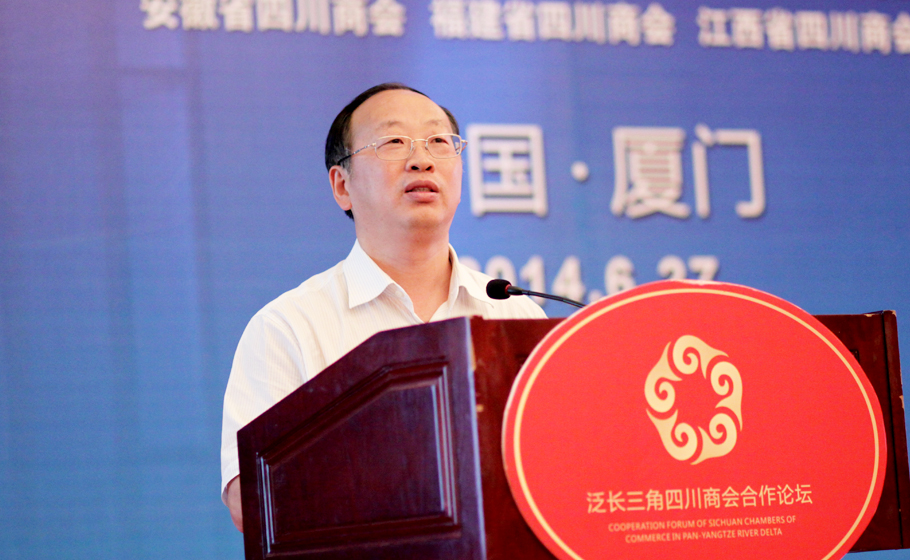 全国工商联党组副书记黄小祥在致辞中指出,今天参与论坛的六省一市四川商会,所在的七省市的经济总量占了全国的三分之一。当前我国经济面临着结构转型,十八大提出要让市场在资源配置中起决定性作用,深化经济体制改革,强调简政放权,释放市场活力。简政放权,单靠减少政府审批等行政措施是不够的,需要依靠商协会、行业组织等作为桥梁,沟通政企、正确反映市场实际情况和企业心声,使得政府的施政方针可以更好地为企业发展服务。同时要让商协会充分发挥行业自律作用,促进企业健康可持续发展。泛长三角四川商会合作论坛已经成功举办两届,建议在过去成功的基础上,研究和探索新的合作机制、新的发展路径。